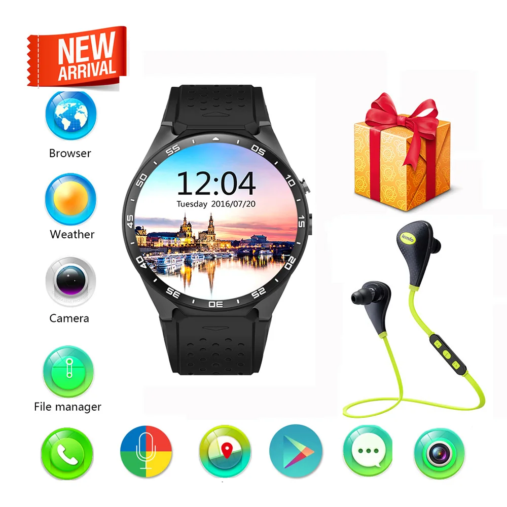 Main Features : KingWear KW88 3G WiFi Smart Watch SIM Card Bluetooth 4.0 MTK6580 Heart Rate GPS Google Play 2.0MP Camera smartwatch phone